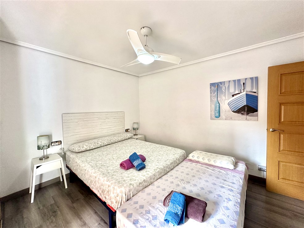 Con 100 m² construidos y aire acondicionado en el salón comedor, este piso asegura un ambiente agradable durante todo el año. Los ventiladores en las habitaciones proporcionan una brisa refrescante en los días más calurosos. La orientación sur-oeste garantiza que disfrutarás de luz natural y vistas agradables.